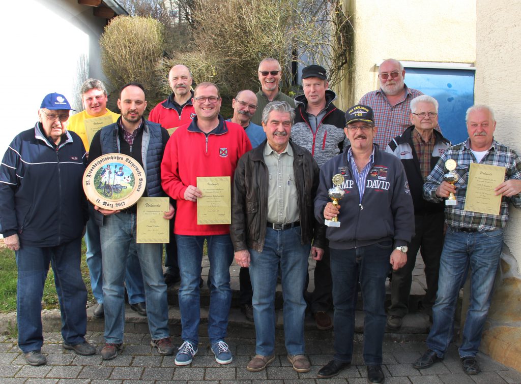 Den ersten Platz belegte Alexander Schulmeister von der Bürgergarde Ellwangen mit 35 Ringen vor Wolfgang Fromm von der Bürgerwehr Ettlingen mit 34 Ringen gefolgt von Jörg Herrmann vom Albrecht Schedels Fähnlein mit ebenfalls 34 Ringen. Bei der Mannschaftswertung kam die Mannschaft der Bürgerwehr Ettlingen auf Platz 1 gefolgt von der Mannschaft des KKS Bretten und der Bürgergarde Ellwangen. Daniel Kleiber von der historischen Bürgerwehr Bretten war der Gewinner der Ehrenscheibe. Der Vorsitzende Dieter Petri überreichte die Urkunden, Pokale und die Ehrenscheibe. Für das leibliche Wohl  sorgte Karlheinz Bock vom KKS Bretten mit seinem Team.