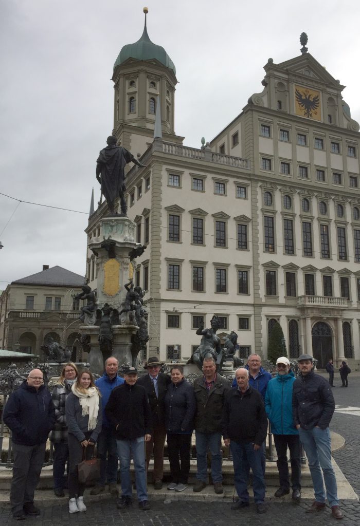 Am Sonntagmorgen, bei leichtem Regen, ging die Fahrt nach Augsburg. Bei sehr windigem Wetter wurde die Altstadt mit dem Fuggerhaus besichtigt. Nach der Mittagspause, im Ratskeller wurde die Heimfahrt angetreten. Durch die bei Sonnenschein unternommene
